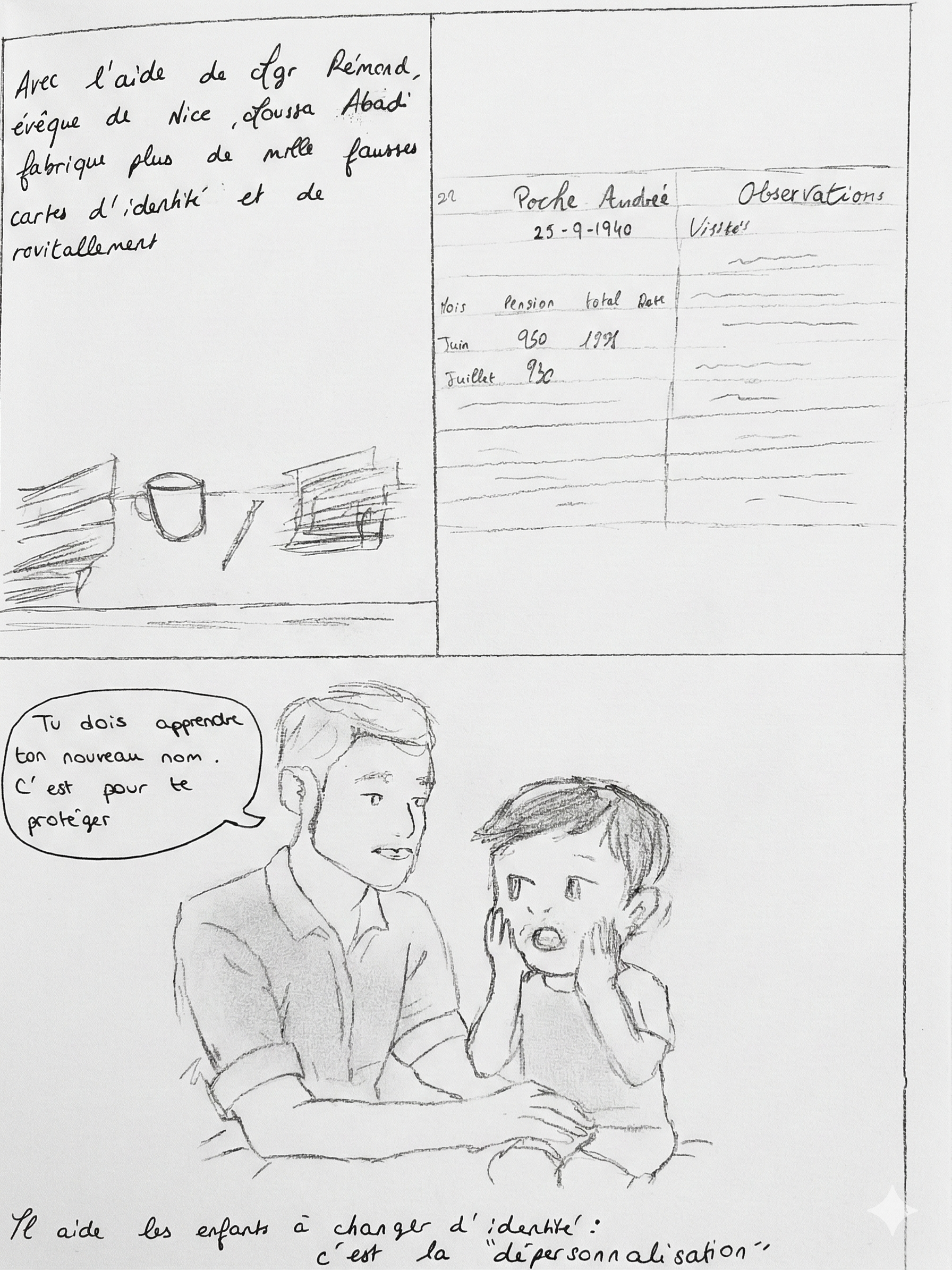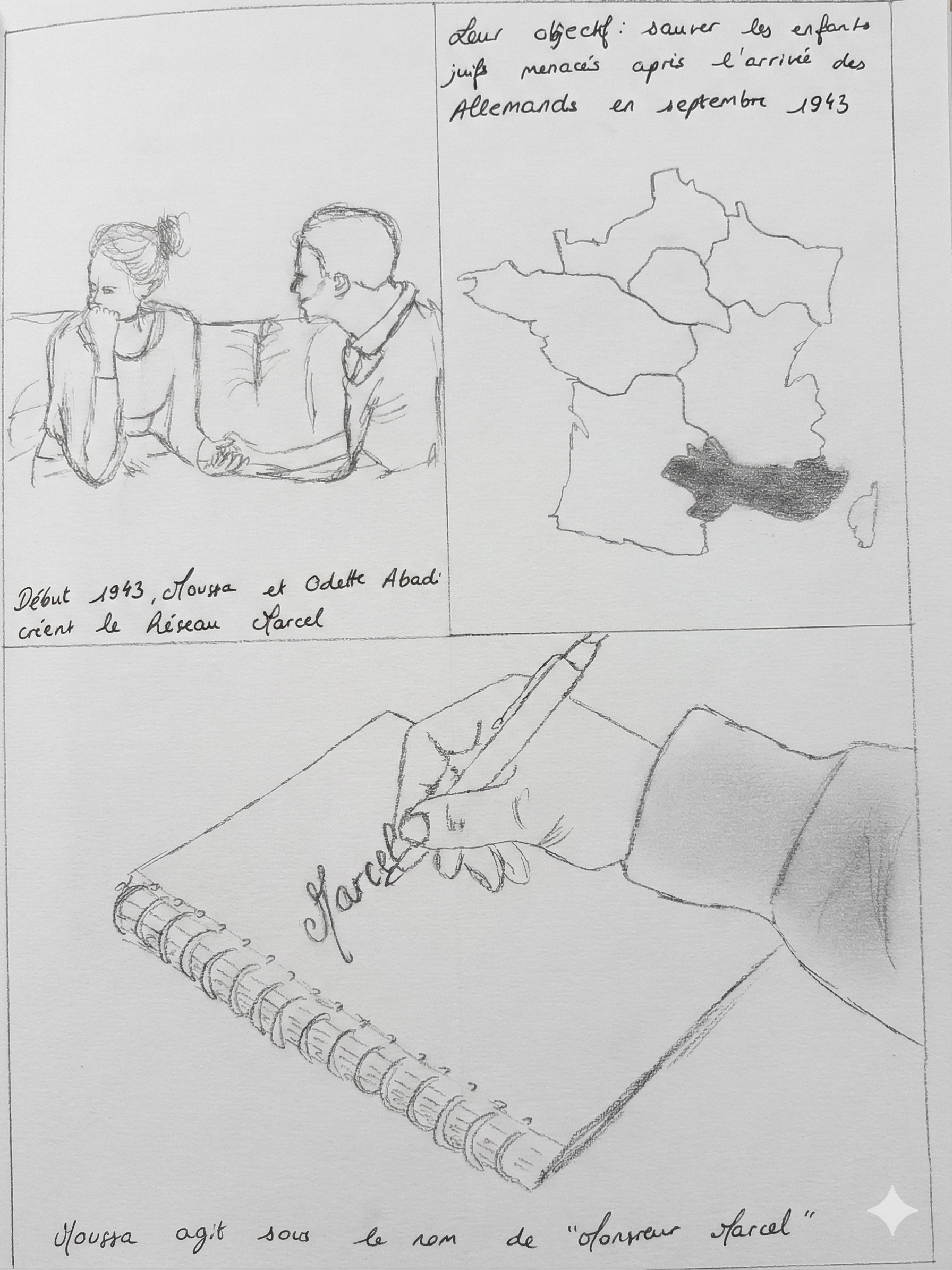Raconter Odette, Moussa, les Pasteurs Gagnier et Evrard, Mgr Rémond, leur faire vivre Nice et son occupation successivement Italienne puis Allemande, parler du racisme, de l'antisémitisme, de solidarité, d'éthique, d'enfance. Ils me questionnent sur celle-ci, bien sûr ils s'identifient, et soudain, ils me voient comme la petite fille de l'époque : nos émotions se conjuguent.