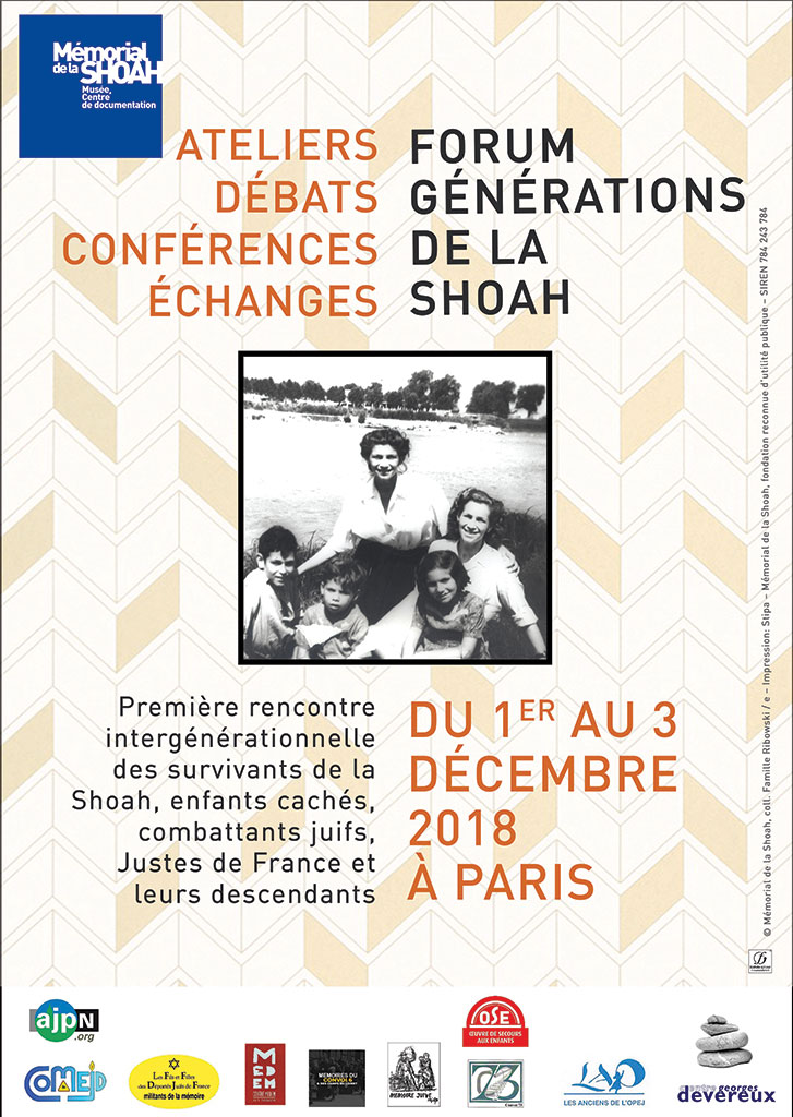 Du 1er au 3 décembre 2018 se tiendra à Paris la première rencontre intergénérationelle des survivants de la Shoah, enfants cachés, combattants juifs, Justes de France et leur descendants.